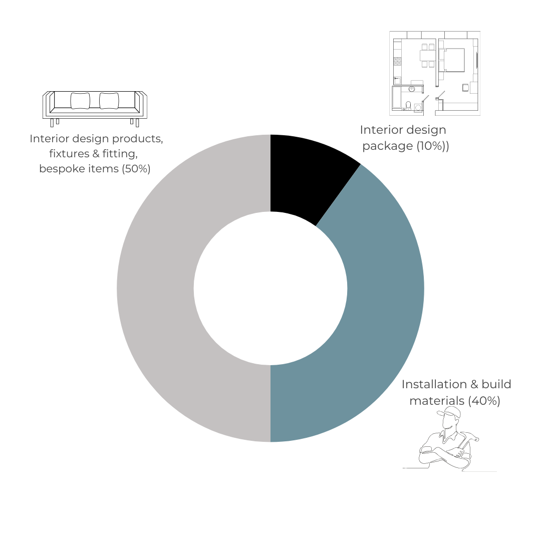 While interior design package prices are fixed, not influenced by budget percentage variations, in this case study, the customer's investment resulted in just 10% of the total project spend.