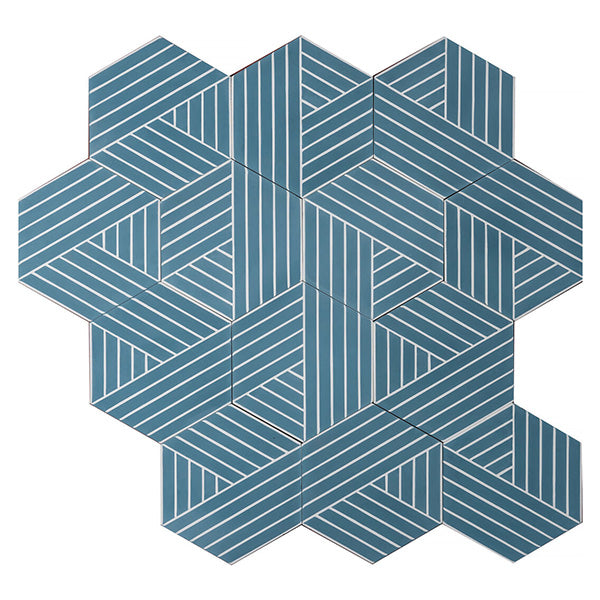 Fold Cement Tiles - Pigeon Blue + Pure White