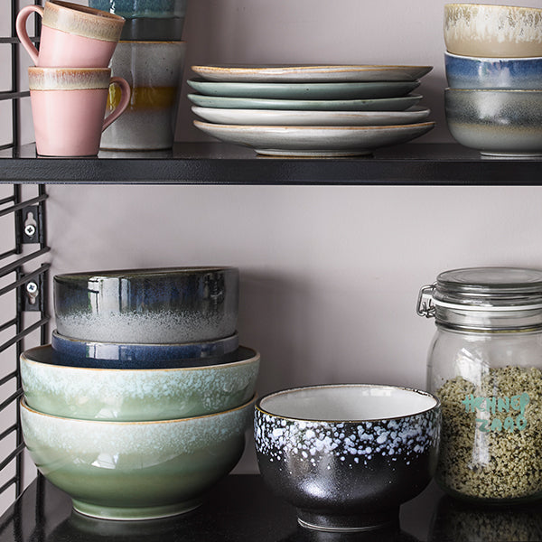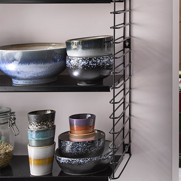 Channelling a 70s cosmic vibe these popular handmade ceramic bowls will style up your dining experience. Galaxy ceramic bowl is finished in a black-white glaze and is also available in Moon a green-blue colour way.