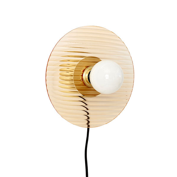 Honey Fluted Glass & Brass Wall Light with Fluted Glass – Plug-in or Hardwired