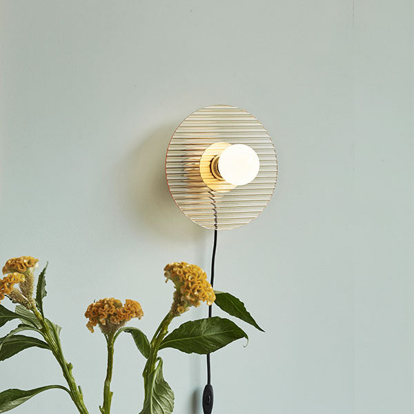 Brass Wall Light with Fluted Glass – Plug-in or Hardwired